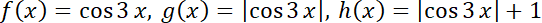 Rozwiązanie zadania zacznij od naszkicowania wykresu funkcji f. Następnie, by narysować wykres funkcji g, odbij symetrycznie względem osi OX wszystkie punkty wykresu funkcji f znajdujące się pod osią. By otrzymać wykres funkcji h, wykres funkcji g przesuń o 1 jednostkę w górę.