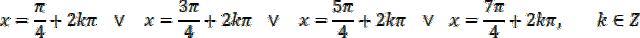 . Następnie zapisz 10 najmniejszych dodatnich rozwiązań należących do wyznaczonych zbiorów. Oblicz sumę wyznaczonych pierwiastków, jako sumę ciągu arytmetycznego.