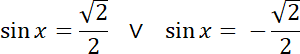 Aby rozwiązać zadanie, zacznij od podzielenia równania przez 2. Następnie spierwiastkuj je obustronnie i rozbij na alternatywę dwóch równań. Następnie dla pierwszego równania wyznacz wartości, dla których sinus przyjmuje wartość