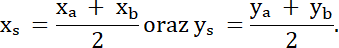 Oblicz współrzędne punktu S, korzystając ze wzoru na środek odcinka: