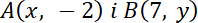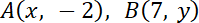 Ustal współrzędne punktu A jako A(x, -2) oraz punktu B jako B(7, y).