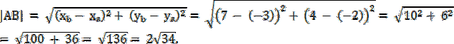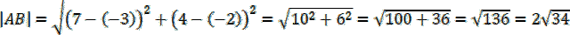 Oblicz długość odcinka AB, korzystając ze wzoru na odległość między punktami: