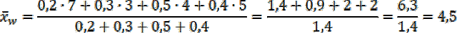 Należy obliczyć średnią ważoną liczb z podanymi wagami.
