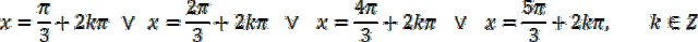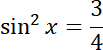 Aby rozwiązać zadanie, zacznij od podzielenia równania obustronnie przez 4. Następnie spierwiastkuj równanie i rozbij je na alternatywę dwóch równań. Dla każdego równani wyznacz wartości, dla których sinus przyjmuje wyznaczoną wartość (dla pierwszego równania: