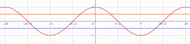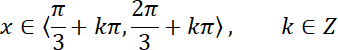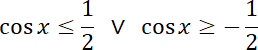 Aby rozwiązać nierówność z wartością, rozbij ją na alternatywę dwóch nierówności. Ich rozwiązanie odczytaj, posługując się wykresem funkcji cosinus.