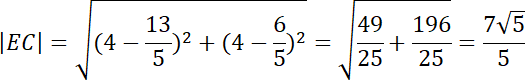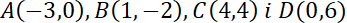 Współrzędne punktu E można wyznaczyć, obliczając punkt przecięcia prostych