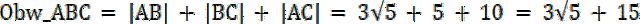 Obwód trójkąta ABC możesz teraz policzyć jako sumę długości boków: