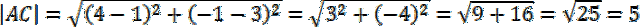 Długość odcinków AB, AC i BC możesz obliczyć przy użyciu wzoru na odległość między dwoma punktami: