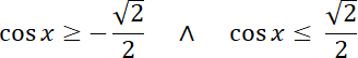 Aby rozwiązać nierówność kwadratową, zacznij od podzielenia jej obustronnie przez 2 oraz spierwiastkowania, rozbijając ją tym samym na koniunkcje dwóch nierówności. Ich rozwiązania odczytaj, posługując się wykresem funkcji cosinus.