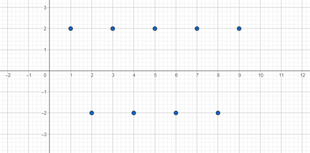 Dany jest ciąg naprzemienny 2, -2, 2, -2, 2, -2, … Naszkicuj jego wykres.