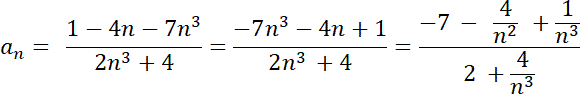 Następnie wylicz granicę z licznika i mianownika. Granica składa się ze stałej i ułamków, ułamki dążą do 0, więc granicą jest stała.