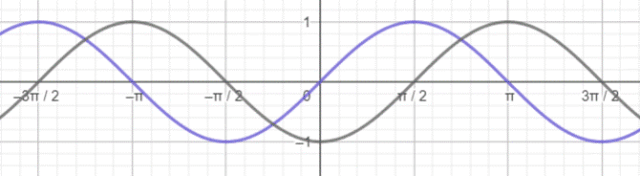 Żeby stworzyć wykres tej funkcji trzeba odbić sin(x) względem osi OY i przesunięcie nowopowstałej funkcji o wektor