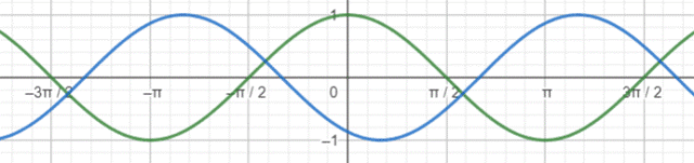 Żeby stworzyć wykres tej funkcji trzeba odbić cos(x) względem osi OY i przesunięcie nowopowstałej funkcji o wektor