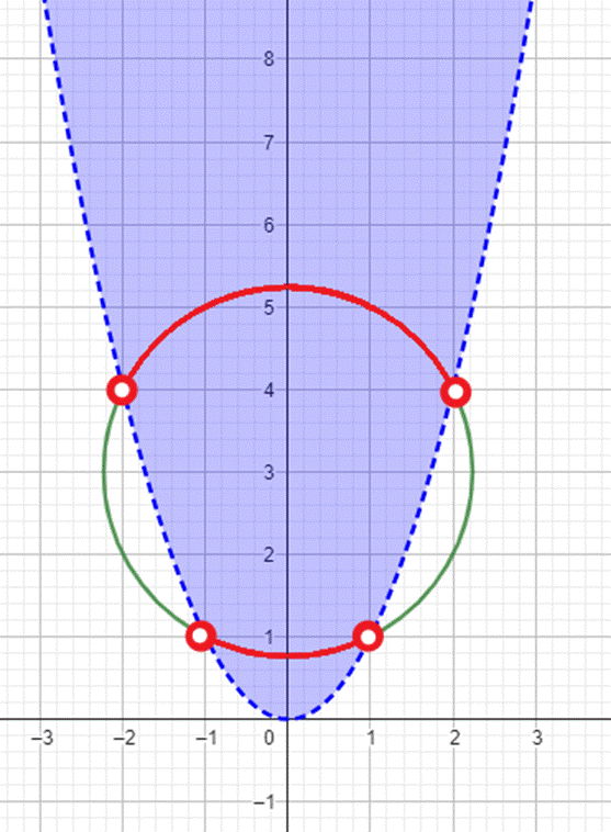 . Rozwiązaniem jest obszar zaznaczony na czerwono.
