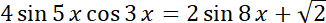 Aby rozwiązać zadanie, wykorzystaj wzór na iloczyn sinusa i cosinusa dwóch różnych kątów. Następnie maksymalnie uprość otrzymane równanie przez wymnożenie wyrażenia w nawiasie i redukcję jednomianów podobnych. Na koniec rozwiąż równanie