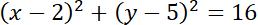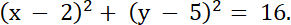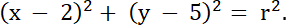 4. Wnioskuj, że środek okręgu jest w punkcie (2, 5).