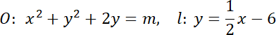 O = x2 + y2 + 2y = m, l: y =