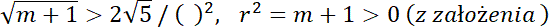 Kolejno wyznacz dziedzinę, wiedząc, że długość promienia musi być większa od 0. Zapisz równanie prostej l w postaci ogólnej. Odczytaj z równania okręgu współrzędne jego środka. Zapisz długość promienia okręgu za pomocą parametru m. Następnie oblicz odległość środka okręgu od prostej l, używając wzoru na odległość punktu od prostej. Kolejno rozważ trzy przypadki. Prosta będzie miała dwa punkty wspólne z okręgiem, gdy długość promienia będzie większa niż odległość środka okręgu od prostej. Prosta będzie miała jeden punkt wspólny z okręgiem, gdy długość promienia będzie równa odległości środka okręgu od prostej. Prosta nie będzie miała punktów wspólnych z okręgiem, kiedy długość promienia okręgu będzie mniejsza niż odległość, środka okręgu od prostej.