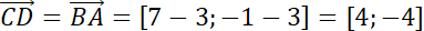 . Przyrównaj do siebie współrzędne wektorów i znajdź współrzędne punktu D.