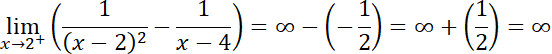 Aby obliczyć taką granicę, musisz rozbić ją na dwa ułamki, z których różnicy składa się wyrażenie. Następnie granicę prawostronną policz dla obu powstałych ułamków oddzielnie. Otrzymujesz w wynikach nieskończoność i wartość liczbową, dzięki czemu możesz skorzystać z twierdzenia