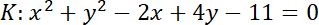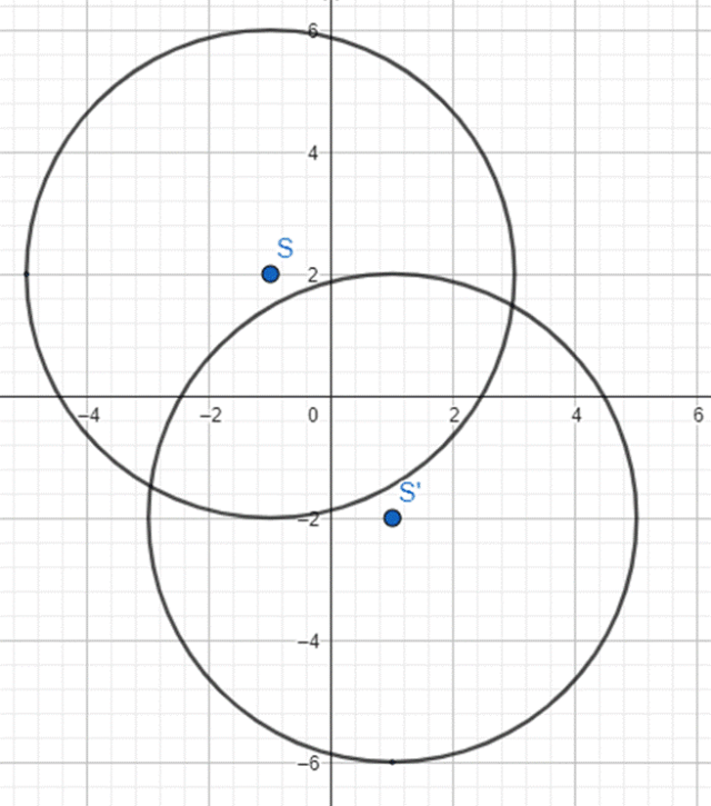 , który jest symetryczny w stosunku do początku układu współrzędnych danego okręgu K. Następnie narysuj okręgi.