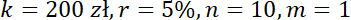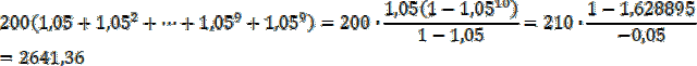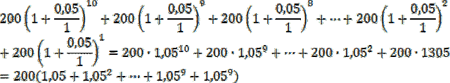 Wiadomo, że pierwsza wpłata będzie kapitalizowana 10 razy, druga 9, a ostatnia raz. Zatem powstaje równanie: