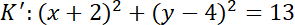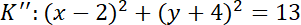 Okrąg K” ma środek w punkcie S”(2, -4) oraz promień