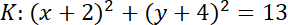 Okrąg K posiada środek w punkcie S(-2, -4) oraz promień r =