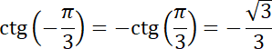 Oblicz wartość podanego wyrażenia, korzystając z faktu, że funkcja cotangens jest funkcją nieparzystą, czyli zachodzi równość