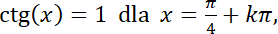 Z wykresu tej funkcji odczytaj, że przyjmuje ona wartość 1 dla argumentu