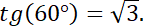 3. Wykorzystaj znaną wartość tangensa kąta 60°: