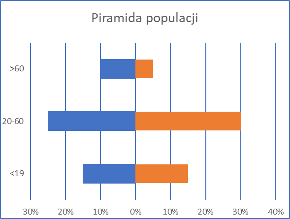 Zachowując proporcje, narysuj na podstawie otrzymanych danych piramidę populacji.