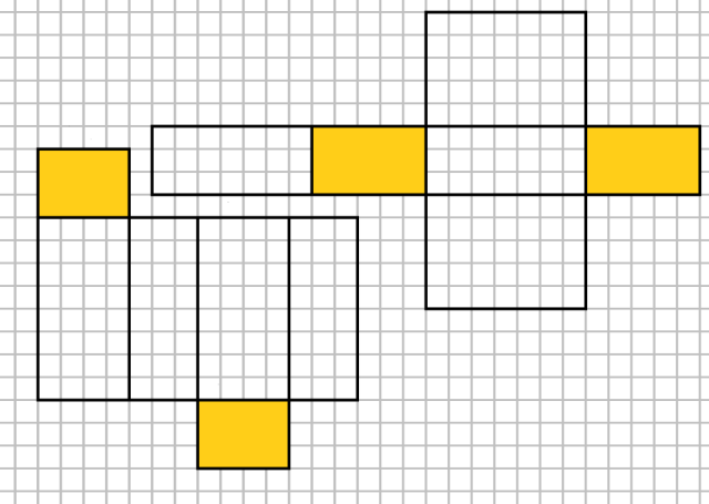 Narysuj ściany prostopadłościanów tak, żeby ich krawędzie pokrywały się w miejscach czarnych krawędzi. Na rysunku kratka ma bok długości .