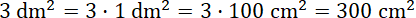 Zauważ, 3 dm2 to trzy razy po 1 dm2, więc możesz zamienić 1 dm2 na cm2 (1 dm2 to 100 cm2, bo 1 dm to 10 cm), a otrzymany wynik pomnożyć przez liczbę 3.
