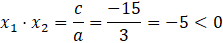 to rozwiązania są przeciwnych znaków, więc jedno rozwiązanie jest dodatnie, a drugie jest ujemne.