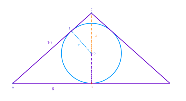 Zauważ, że trójkąty 𝐴𝐵𝐶 oraz 𝐶𝐸𝐷 są trójkątami podobnymi z cechy kkk. Wykorzystaj podobieństwo odpowiednich krawędzi, żeby wyliczyć 𝑟: