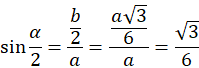 Oznacz jako a bok dwóch ramion trójkąta równoramiennego, jako h wysokość graniastosłupa oraz b – podstawa trójkąta równoramiennego. Z zależności trygonometrycznych oblicz wysokość graniastosłupa. Następnie z zależności trygonometrycznych oblicz podstawę trójkąta równoramiennego. Sinus połowy szukanego kąta to połowa podstawy do ramienia trójkąta równoramiennego.