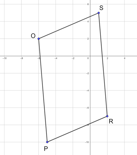 Dane mamy współrzędne punktów P, R i S szukamy współrzędnych punktu O. Zauważamy, że wektor