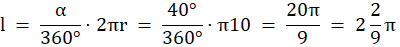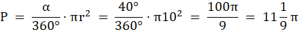 W tym zadaniu oblicz pole oraz obwód wycinka koła o promieniu 10, oraz kąt środkowy 40°.