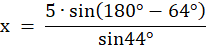 Długość boku PQ oznaczasz przez x. Wiedząc, że suma kątów w trójkącie wynosi 180°, obliczasz brakujący kąt oznaczony przez α, a następnie korzystając z twierdzenia sinusów, obliczasz x.