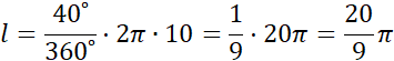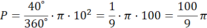 W tym zadaniu oblicz pole i wycinka koła o promieniu 10 i kącie środkowym o mierze 40˚