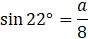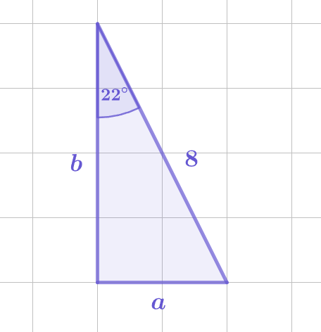Dany jest trójkąt prostokątny o przeciwprostokątnej długości 8. Wyznacz długości jego przyprostokątnych, wiedząc, że jeden z jego kątów ma miarę 22°.