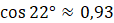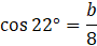 Wyznacz sinus i cosinus kąta 22° jako stosunki odpowiednich boków trójkąta.