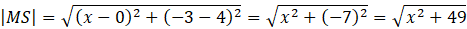 Wykorzystaj wzór na odległość między punktami do obliczenia długości KS oraz MS: