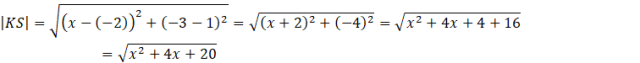 Zauważ, że druga współrzędna punktu S została podana i jest nią -3. Oblicz długości odcinków KS oraz MS wykorzystując wzór na odległość między punktami