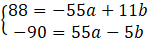 Równanie kierunkowe prostej ma wzór: y = ax + b. Stwórz układ równań, podstawiając wartości punktów należących do niej: