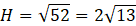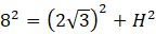 Wykorzystaj twierdzenie Pitagorasa, żeby obliczyć wysokość 𝐻: