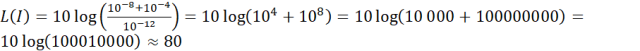Natężenie wydawane przez lodówkę i odkurzacz jednocześnie: 10-8 + 10-4