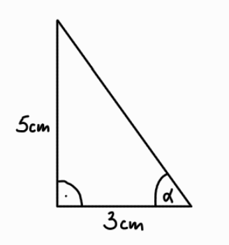 Rysujesz trójkąt prostokątny o przyprostokątnej przy kącie α równej 3 cm i przeciwprostokątnej równej 5 cm.