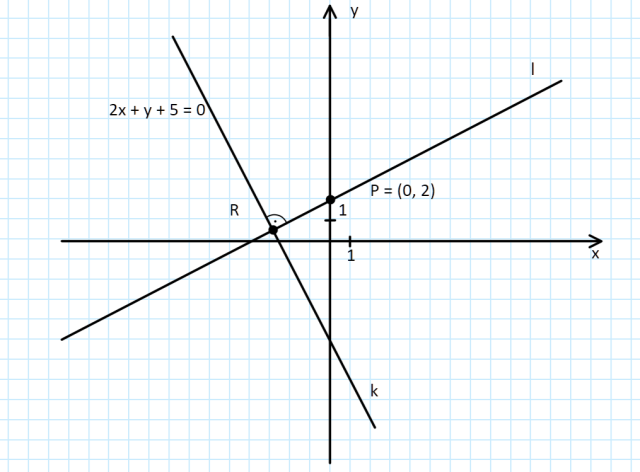 Teraz musisz znaleźć równanie prostej prostopadłej do k i przechodzącej przez punkt P, którą oznacz sobie np. jako l. Jest to prosta prostopadła do prostej k, więc jej współczynnik kierunkowy wynosi: